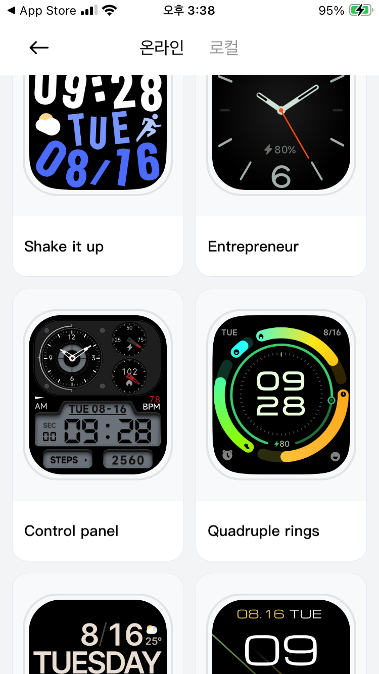 Mi Fitness의 장치에서 워치 페이스를 선택 자신의 취향에 맞는 워치 페이스를 선택해서 적용해 준다.