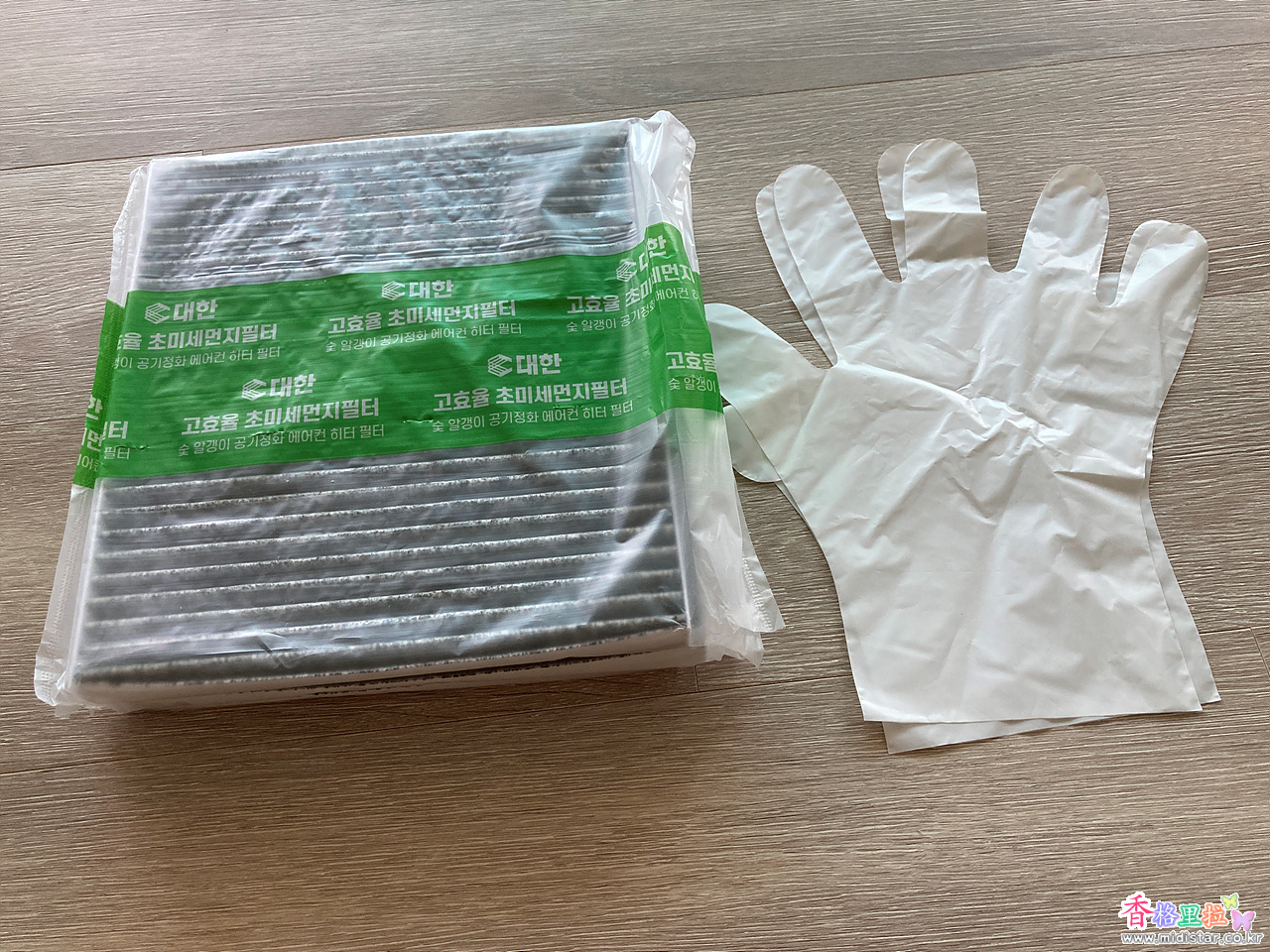 ▲필터 3개와 비닐 장갑