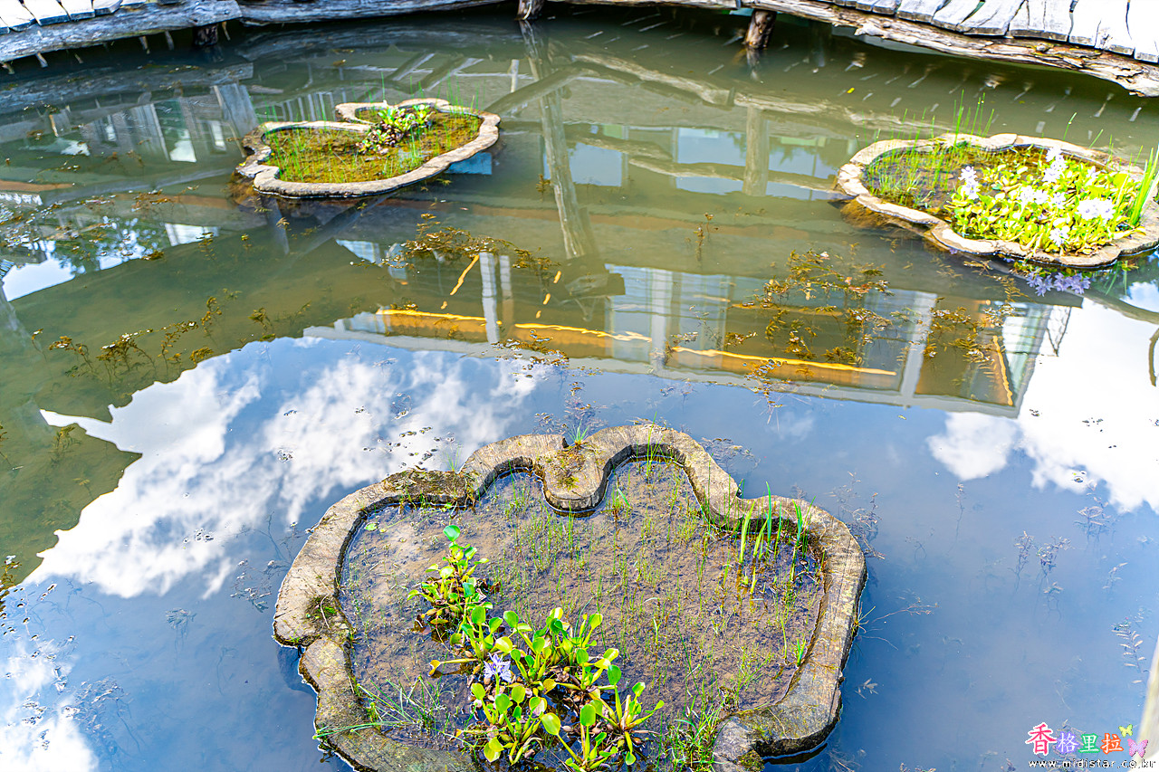 연못 속에도 파란 하늘과 구름이 담겼다.