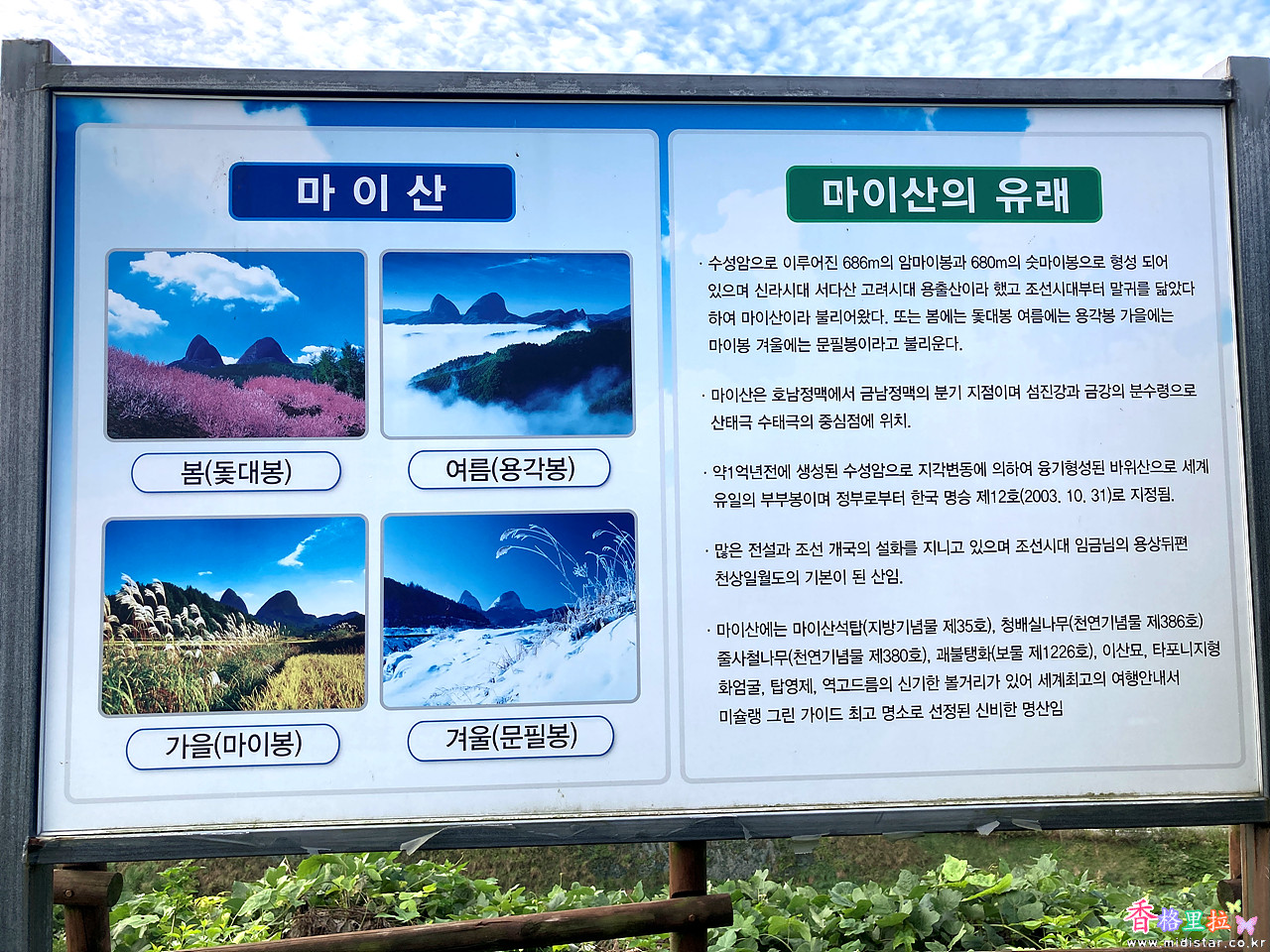 콩나물 황태 해장국으로 아침 식사를 간단히 하고 나와보니 진안 마이산이 보이고 옆에 전망대로 가는 계단이 보여서 계단을 올라가 보았다.