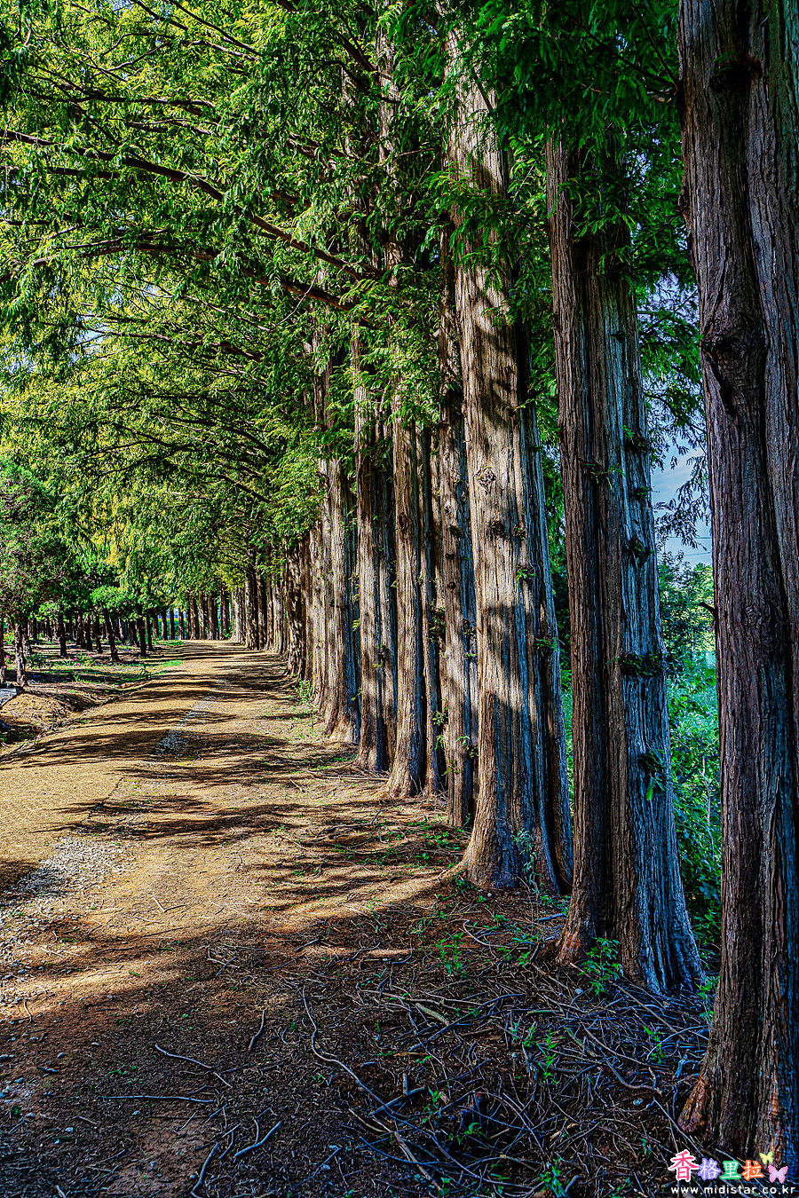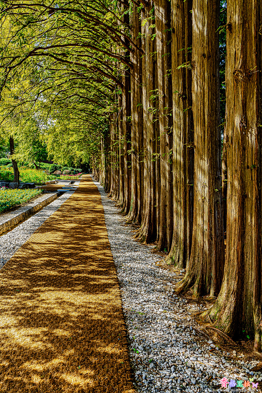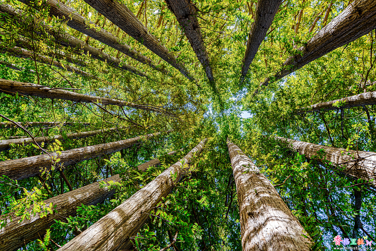 메타스퀘아 산책길은 양옆으로 제법 굵은 메타스퀘아가 심어져 있고 가운데 그리 굵지 않은 메타스퀘아가 심어져 있었다.