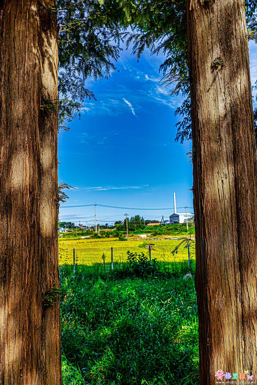 울타리밖 논에 벼가 노랗게 익어가고 있다.