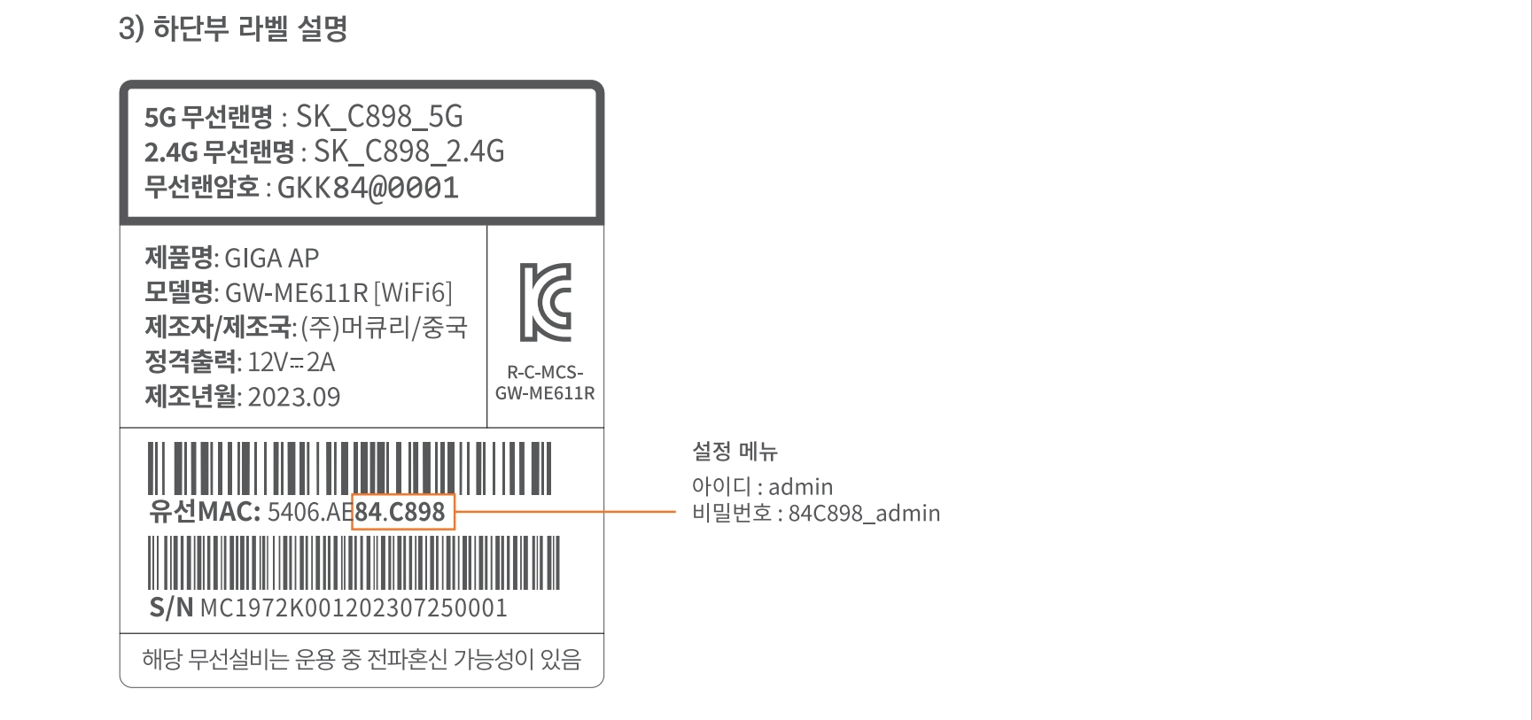 ▲SK Giga WiFi 6 하단부 라벨