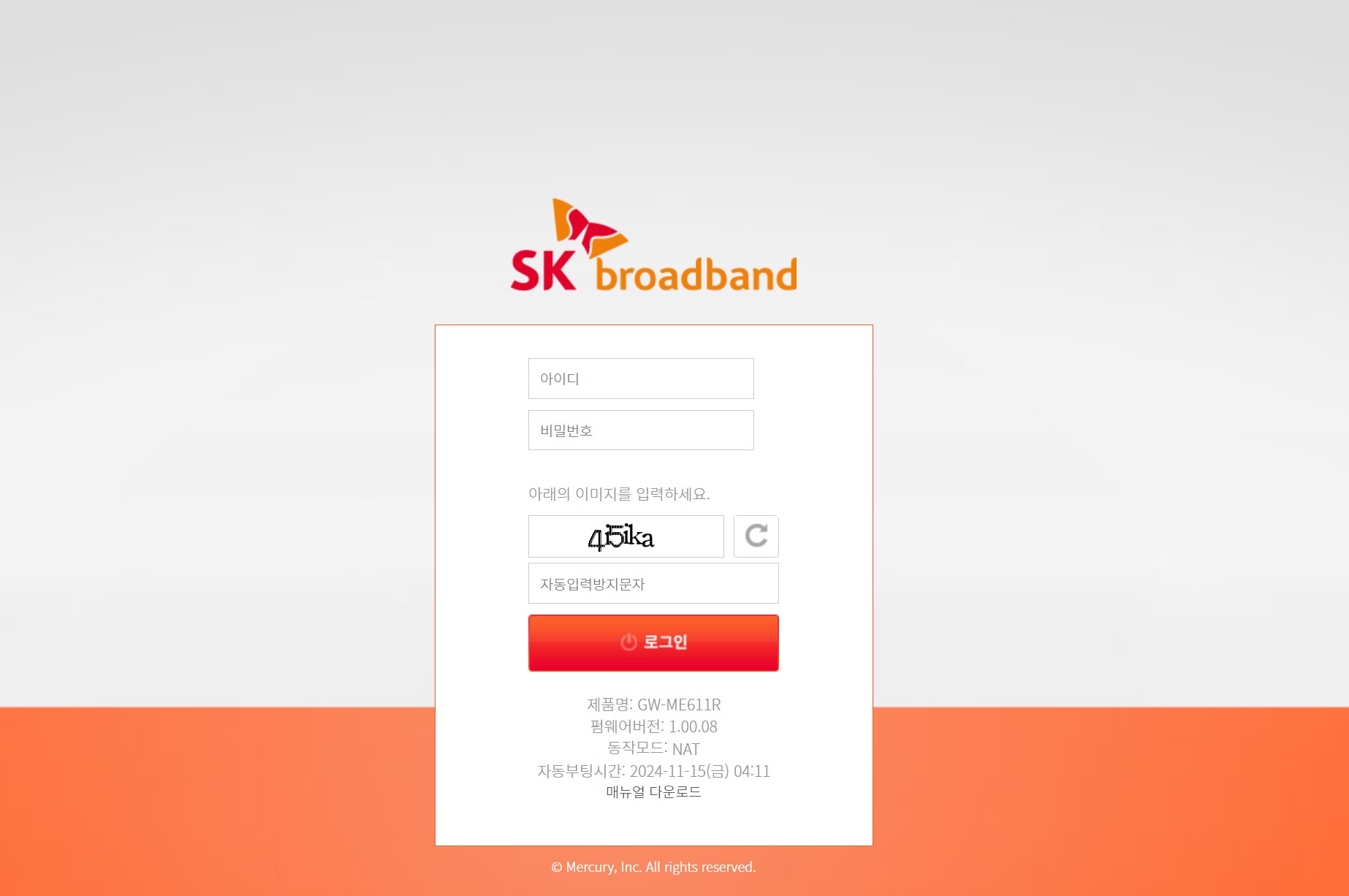 ▲SK Giga WiFi 6 로그인 화면