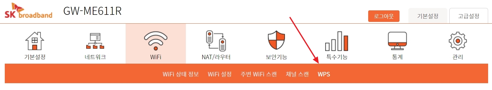 ▲SK Giga WiFi 6 고급설정 메뉴