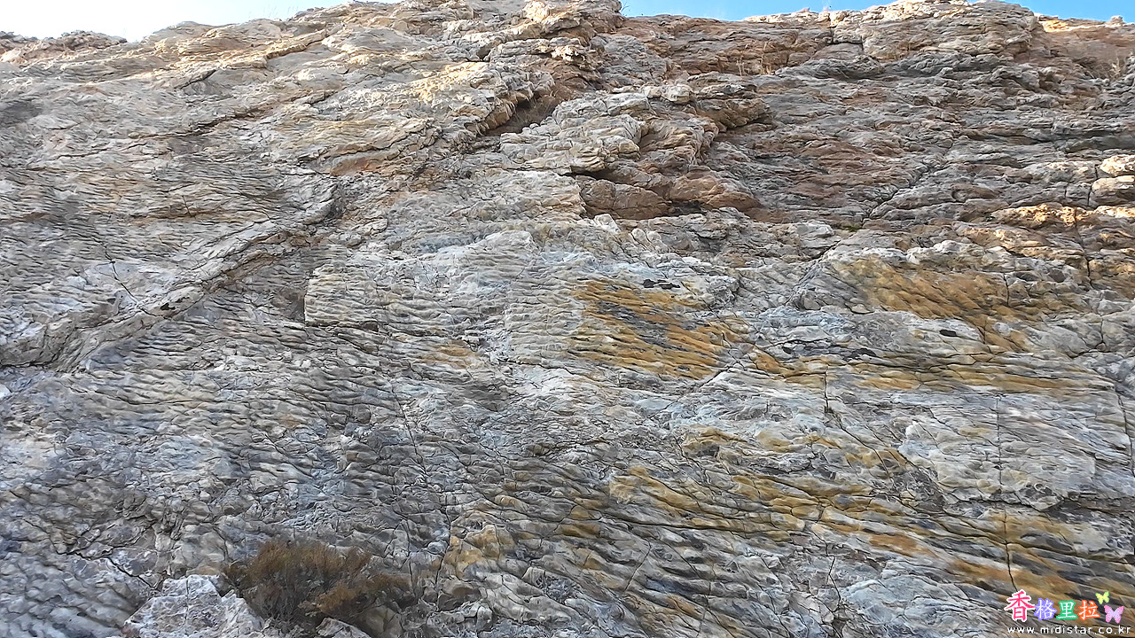 옛날에는 해변이었던 지형이 지각 변동으로 솟아올라 모래톱 해변 흔적이 돌로 화석화된 곳이다.