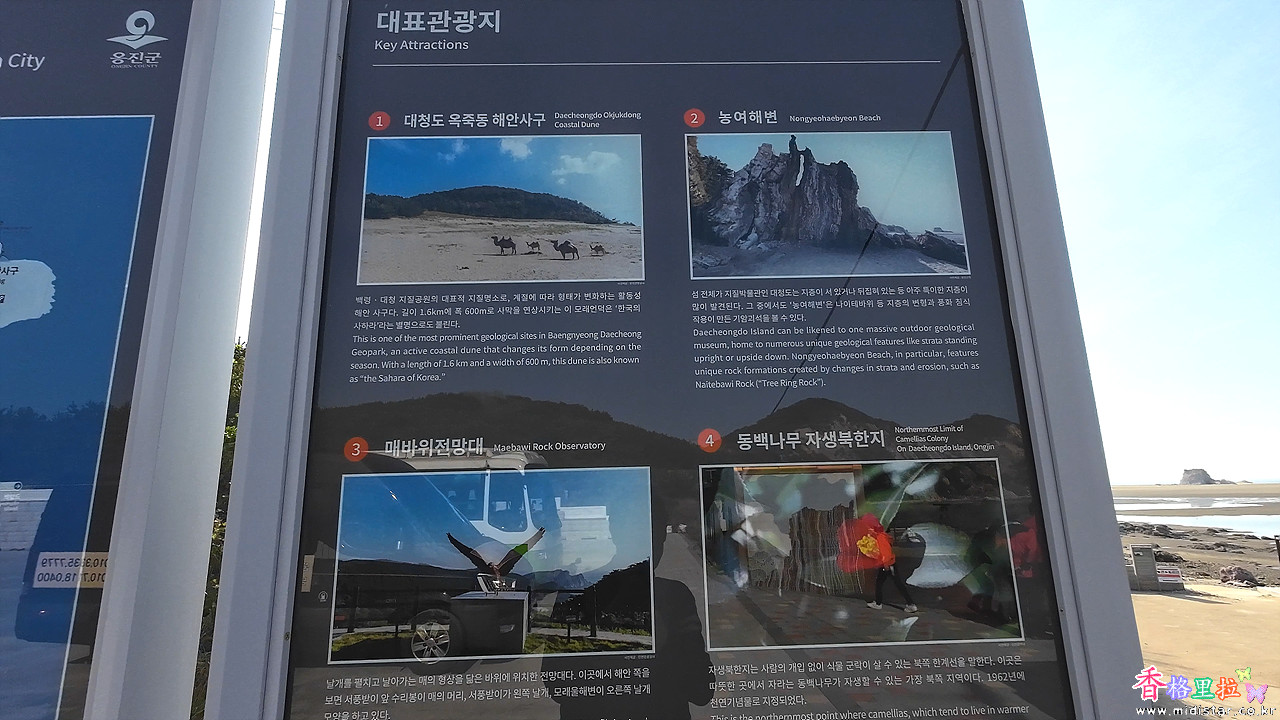 대청도 대표관광지는 옥중도 해안사구, 농여해변, 매바위전망대, 동백나무 자생북한지, 서풍받이, 기름아가리 이렇게 6군데 정도 되는 가보다.