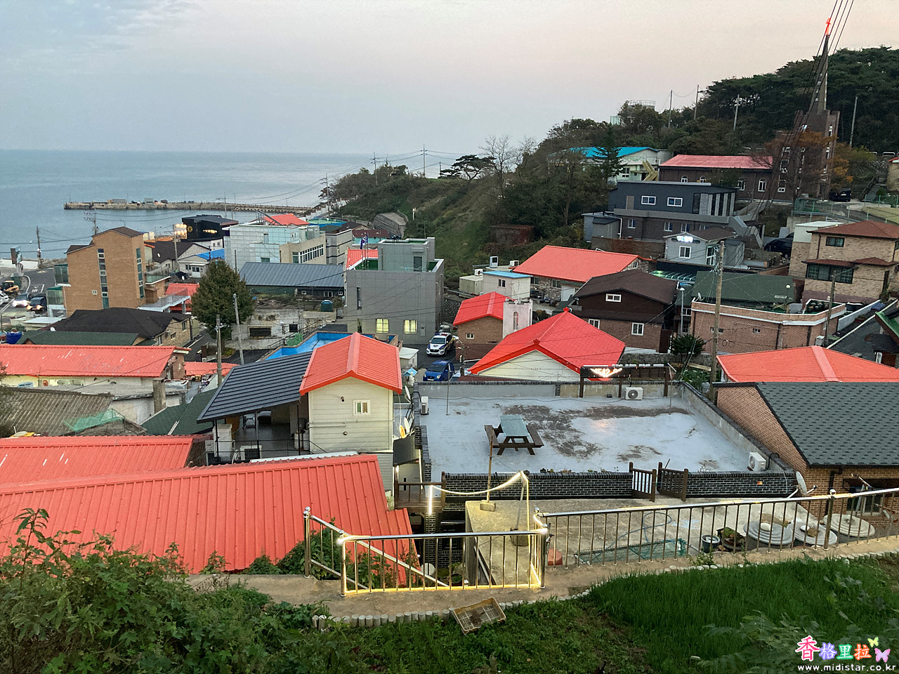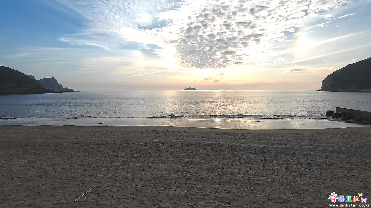 해무가 끼어서 그러지 붉은 기가 없는 밋밋한 노을이다.