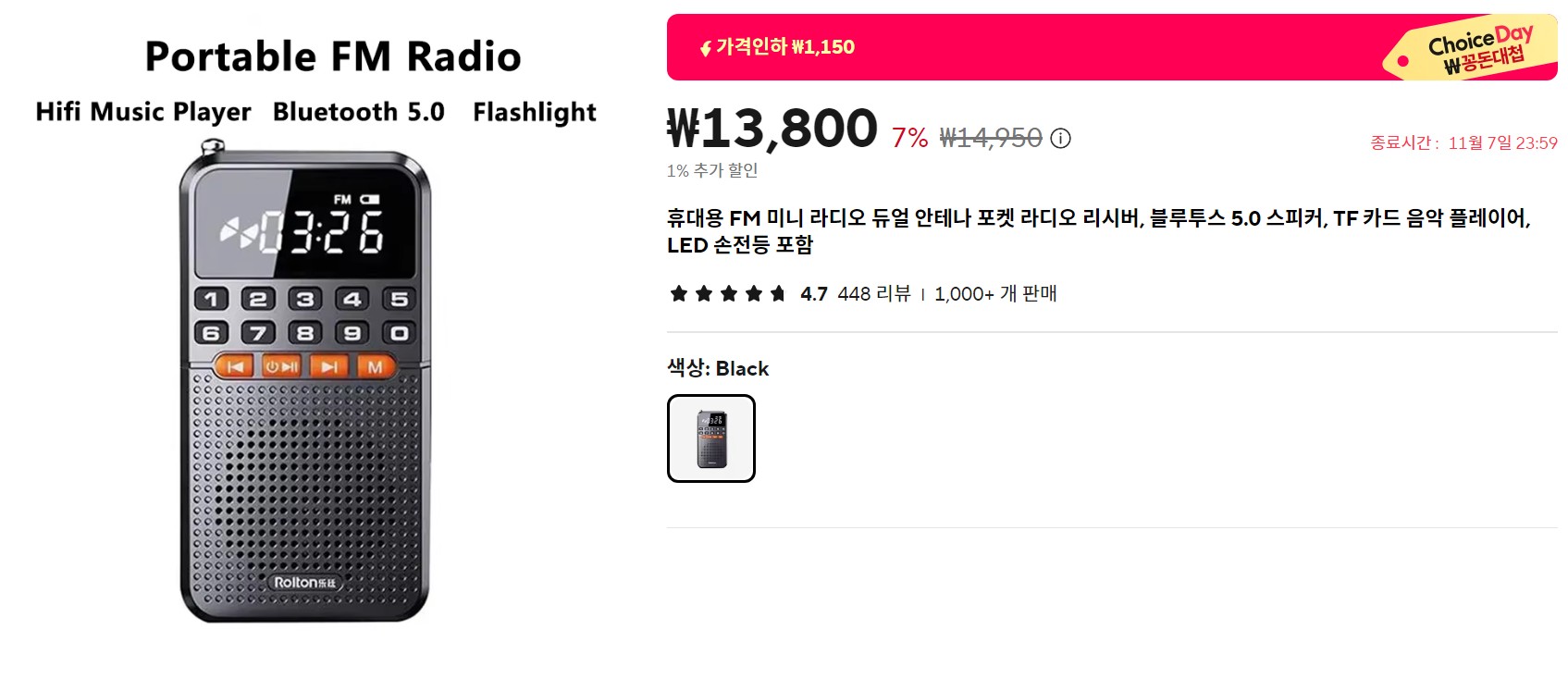 아주 작아서 휴대하기 쉽고 가성비 좋은 FM 라디오이다.