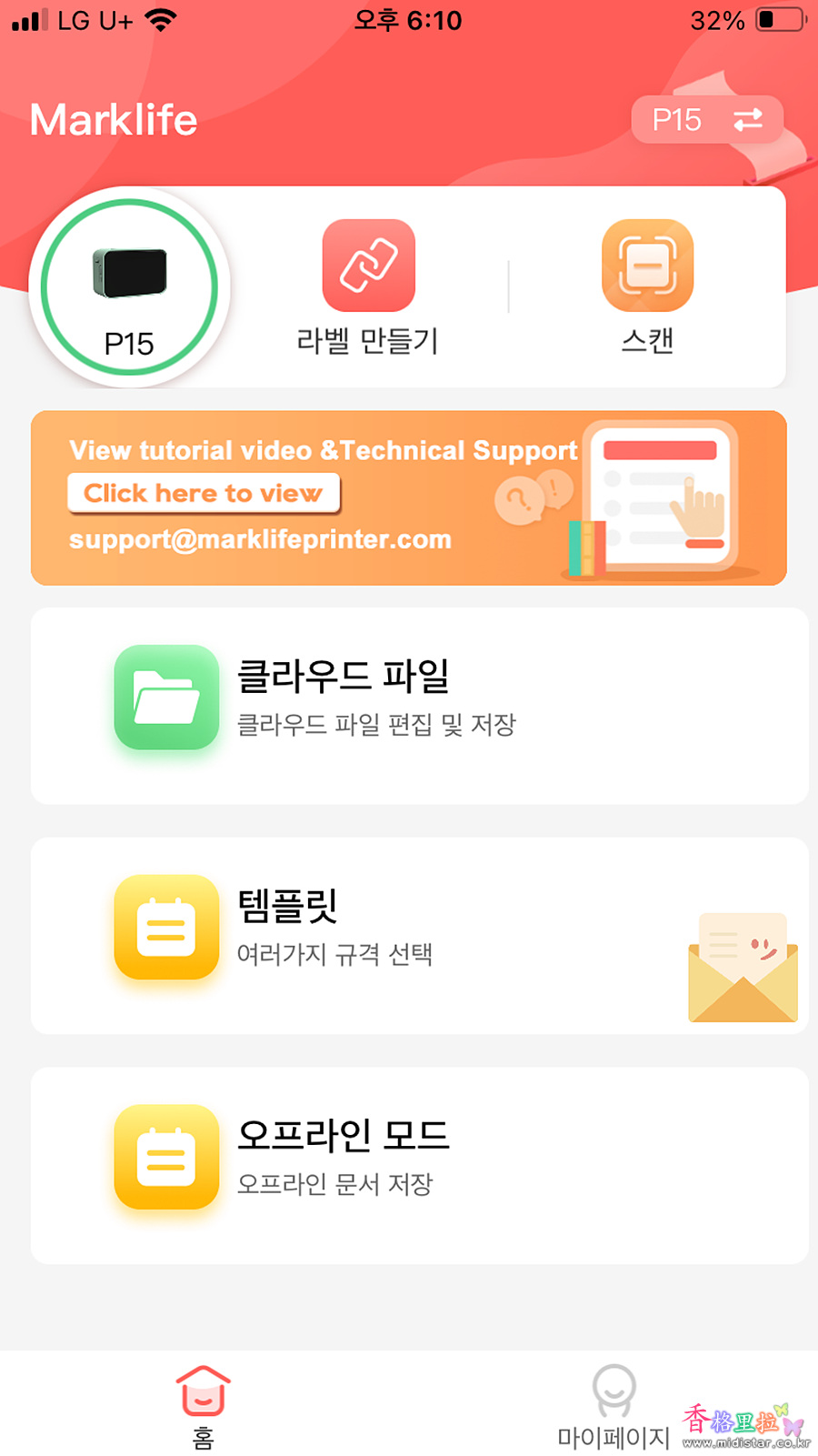 Maklife 앱에서 P15를 선택하여 기기를 연결해준다. 연결이 되면 둥근 테두리가 초록색으로 변한다.