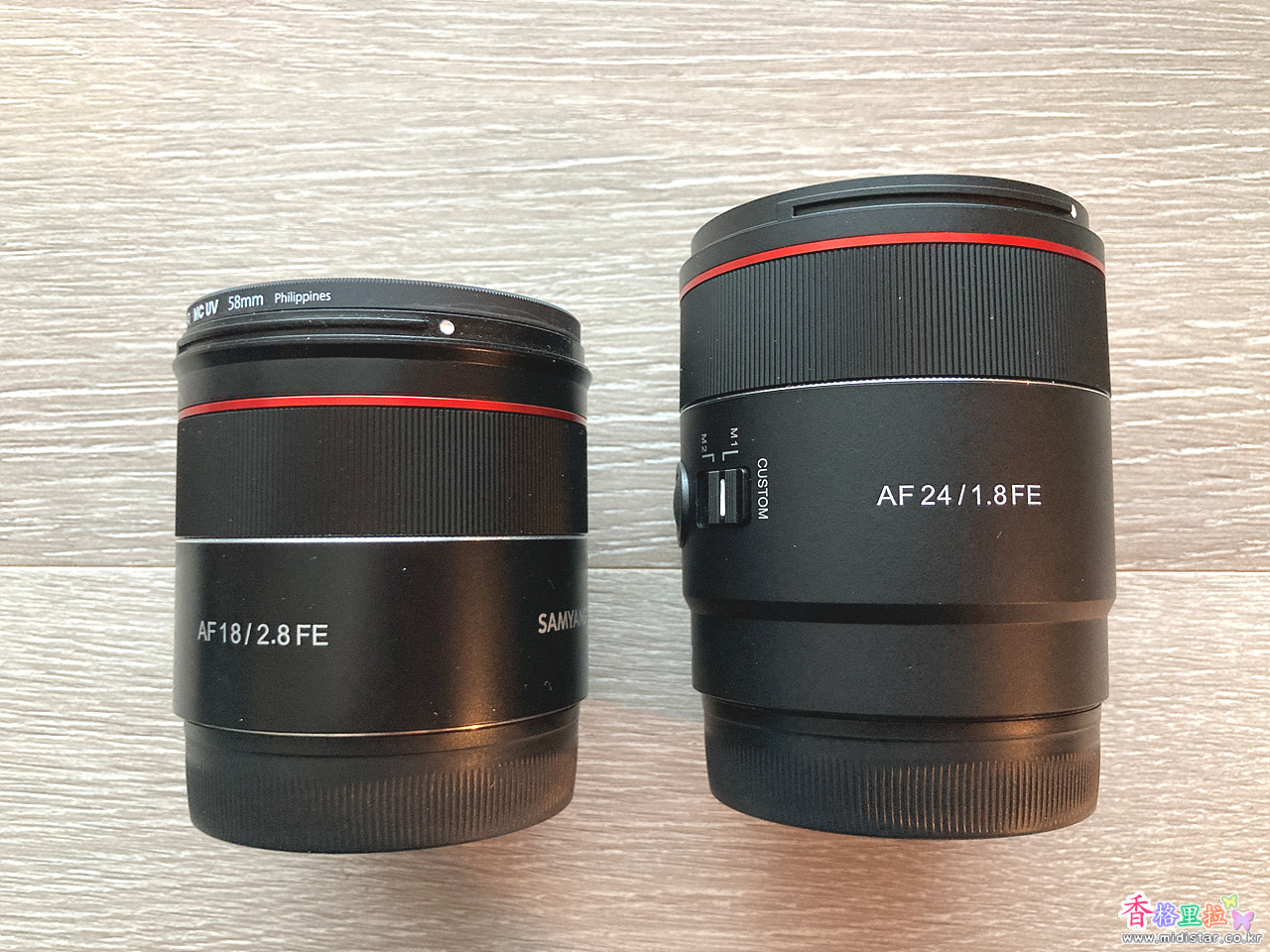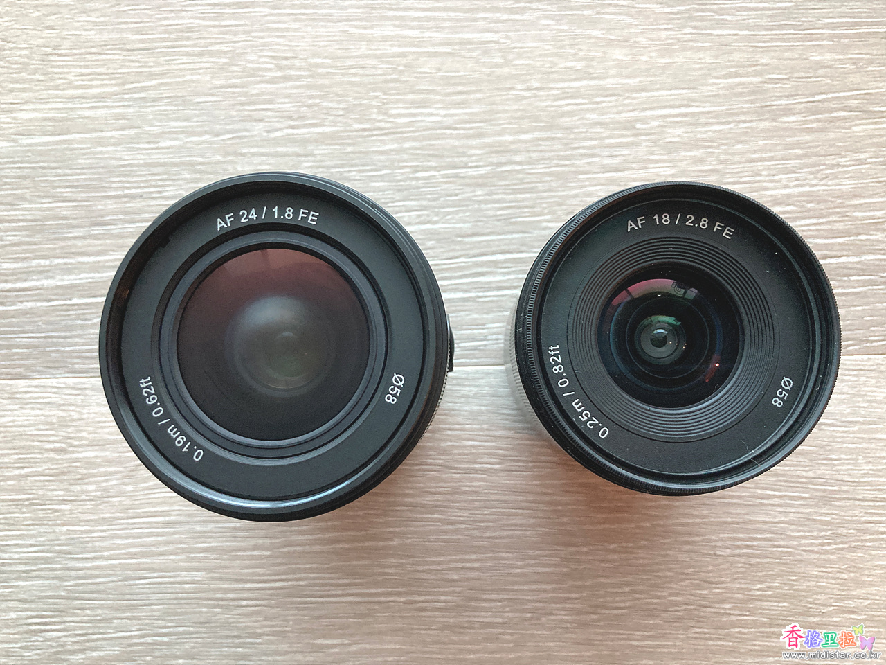 왼쪽이 삼양 AF 18mm F2.8 FE 렌즈, 오른쪽이 삼양 AF 24mm F1.8 렌즈