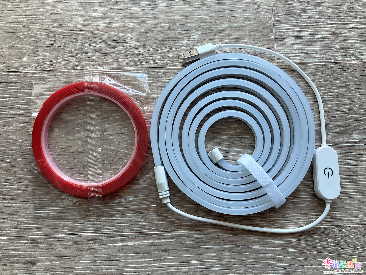 길이 2m LED lamp에 터치식 스위치가 있는 USB 전원 플러그와 양면테이프가 구성품이다.