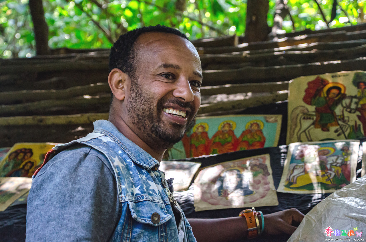 타나호수의 섬에서 그림을 파는 가게의 주인