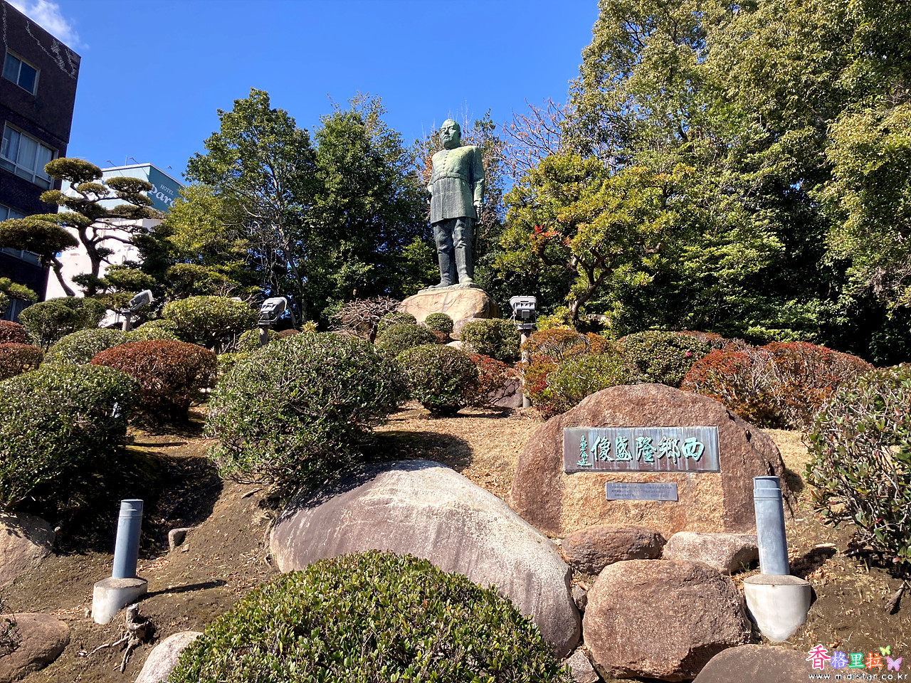 사이고 다카모리 동상(西郷隆盛銅像)이 보인다.