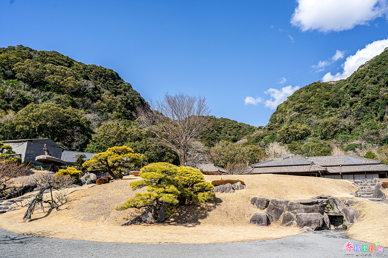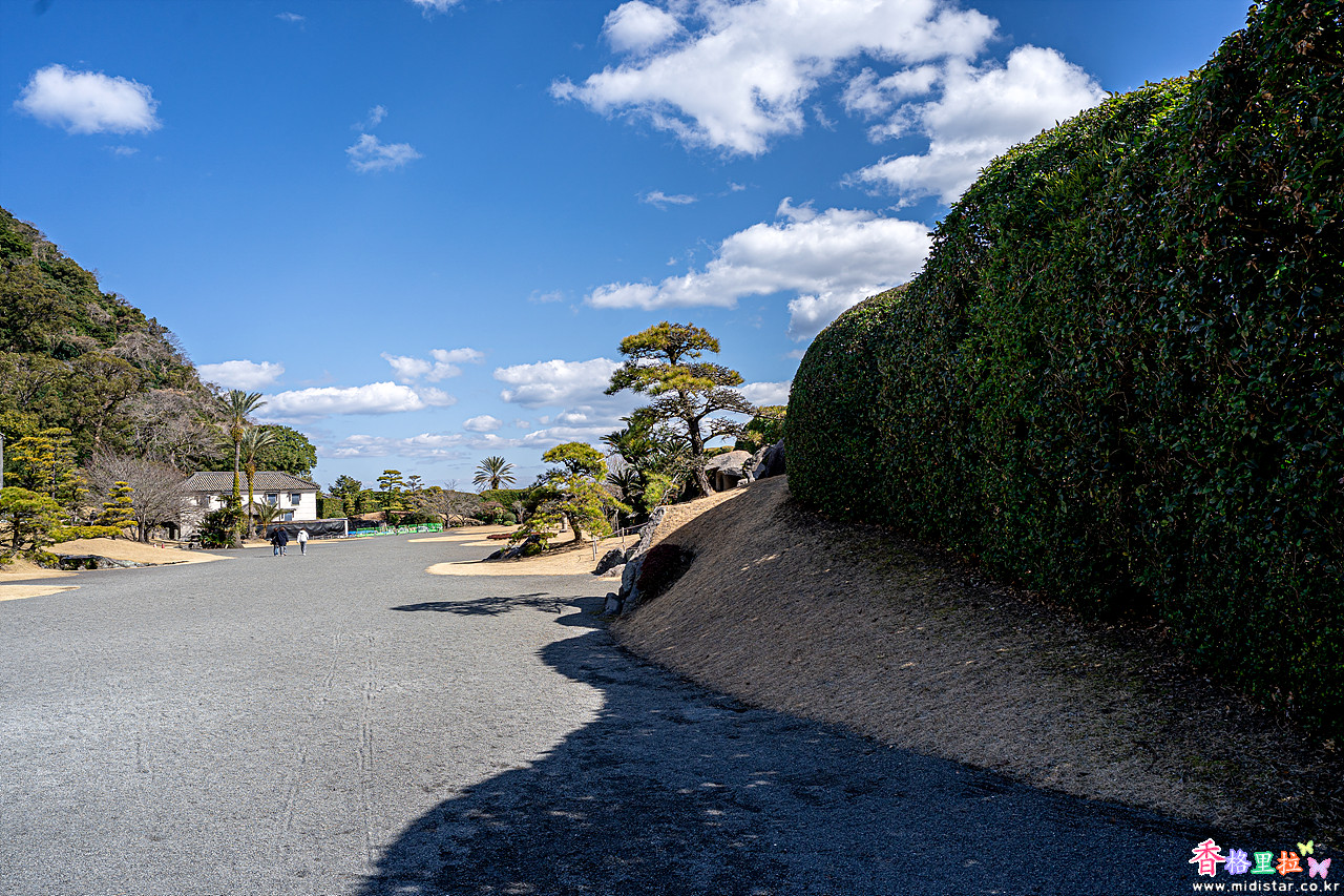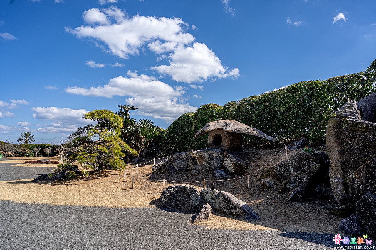센간엔(仙巖園)은 배산임해(背山臨海)의 지형조건인데 바람이 없어 아주 따뜻한 기운이 넘친다.