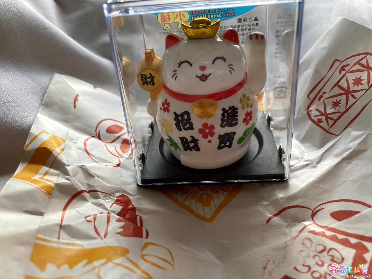 기념품 가게에서 손 흔드는 고양이 인형 하나 샀다. 뒷면에 태양광 패널이 있어서 건전지가 필요없는 제품이다.