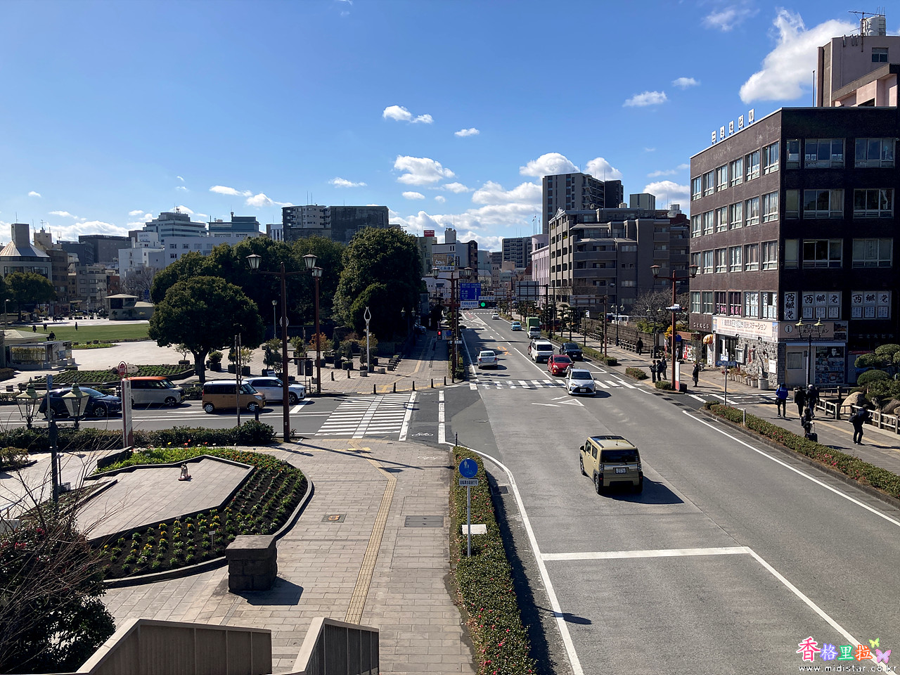 육교를 건너며 내려다본 가고시마(鹿児島) 도로.
