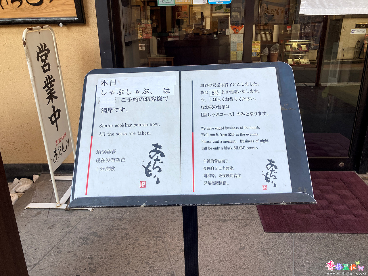 첫날 못 찾은 아지모리를 발견했는데 이미 만석이라는 안내문이 붙어있다.