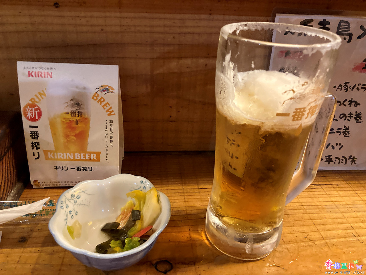 우선 나마비루 한잔 주문하니 메뉴와 메모지, 볼펜을 주며 적어 달라고 한다. 뭘 알아야 주문을 하지... 메뉴 중 2개를 한자로 된 메뉴를 보고 적어서 보여주었더니 뭔지 모르지만 한 가지는 지금 안된다고 한다.