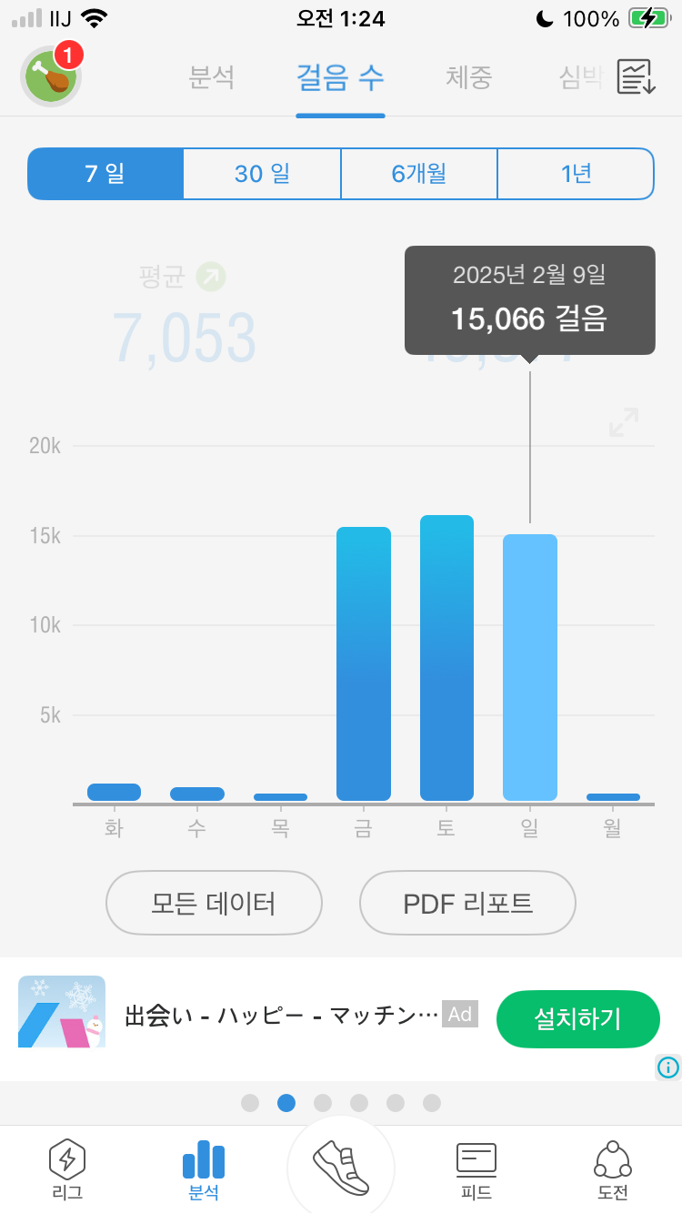 오늘은 15,066 걸음을 걸었다.