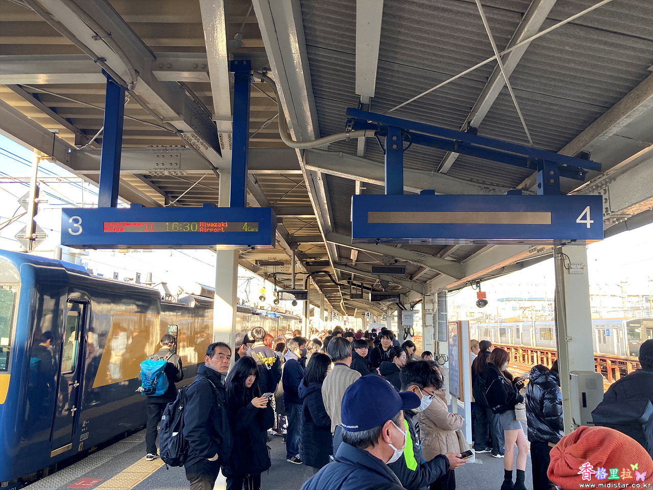 미나미 미야자키(南宮崎) 전역에서도 사람들이 잔뜩 서 있다. 이번에도 기관사가 내려서 안으로 더 들어가라고 외치지만 거의 움직이지 못하는 사람들...그래도 어떻게 꾸역꾸역 다 태운다. 다음 열차가 1시간 뒤에나 오는 운행 스케쥴이라 안 태울 수 도 없는 노릇이다.