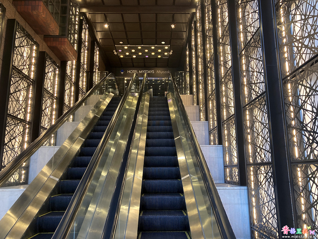 Hotel Mystays Miyazaki는 에스컬레이터를 타고 올라간다.