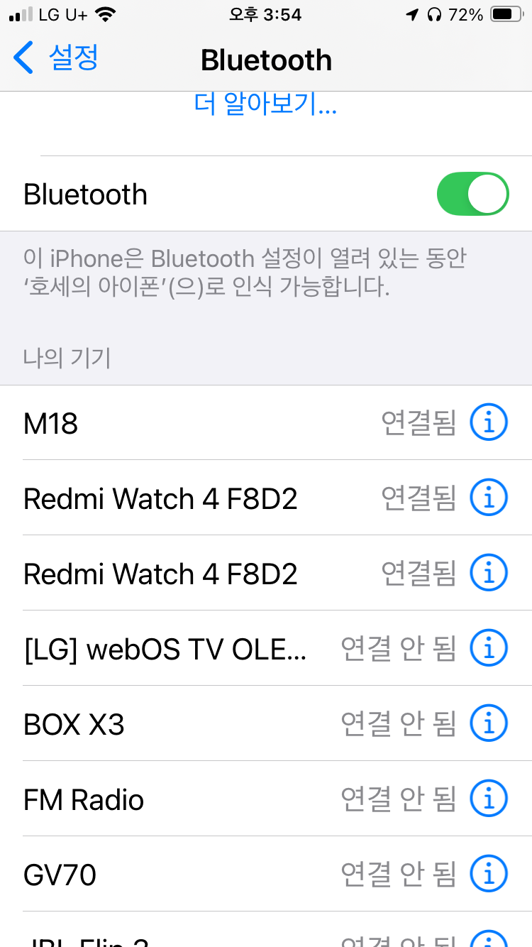 그런데 스마트폰(아이폰)과 블루투스로 연결하여 들으면 음량이 작고 소리가 영 아니다.