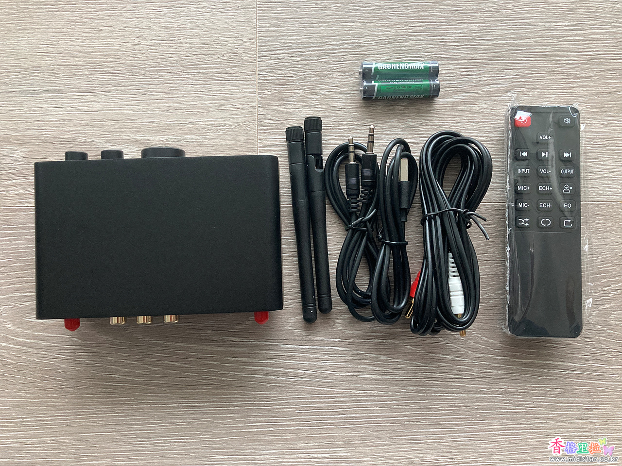 구성품은 M18본체, 안테나 2개, AUX 입력 Cable 2개, 리모컨, 리모컨용 AAA 배터리 2개로 구성되어있다.