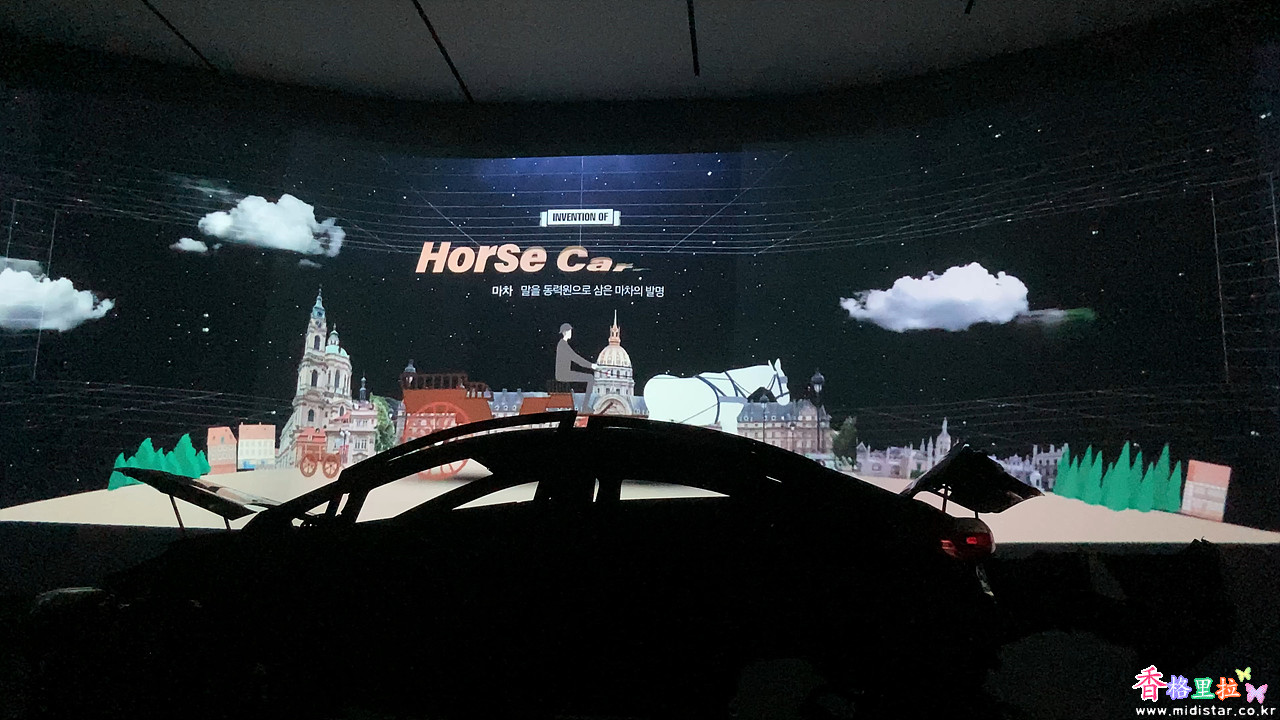 Inside Car라는 주제로 영상를 보여주는데 시각적인 효과가 좋았다.