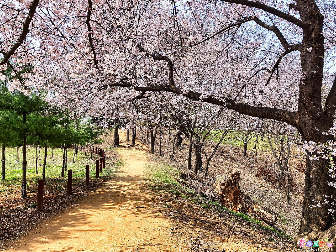 산책로의 벚꽃은 거의 90% 활짝 피었다.