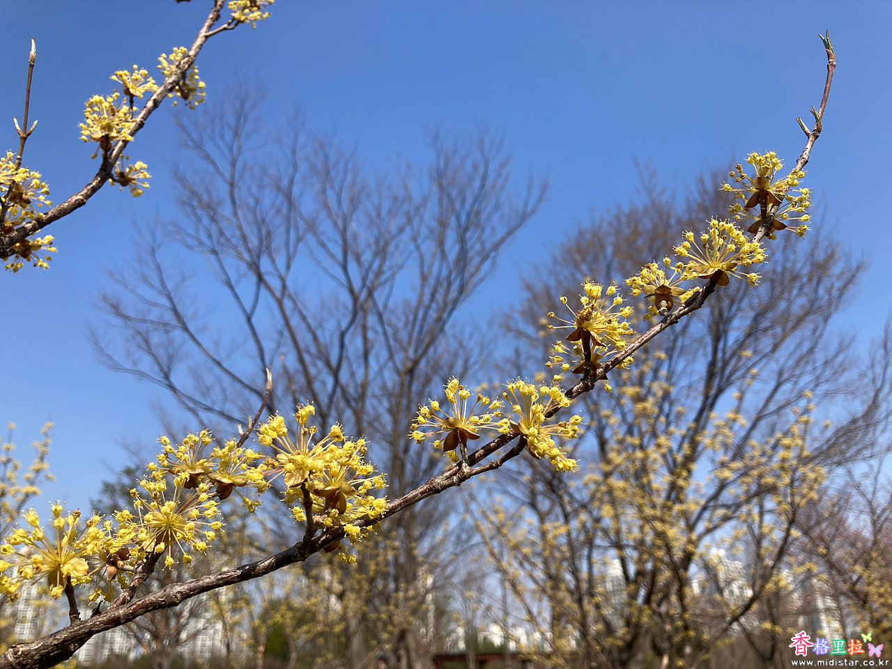 산수유들은 노란 꽃이 예쁘게 피었다.