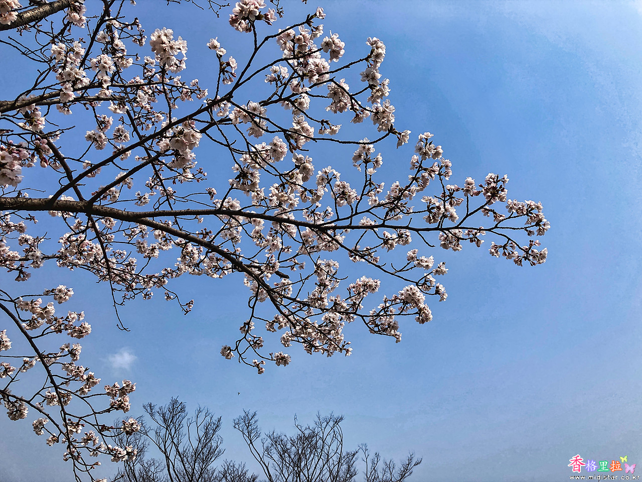 나뭇가지 끝에 군데군데 꽃을 피운 벚꽃만 보인다.