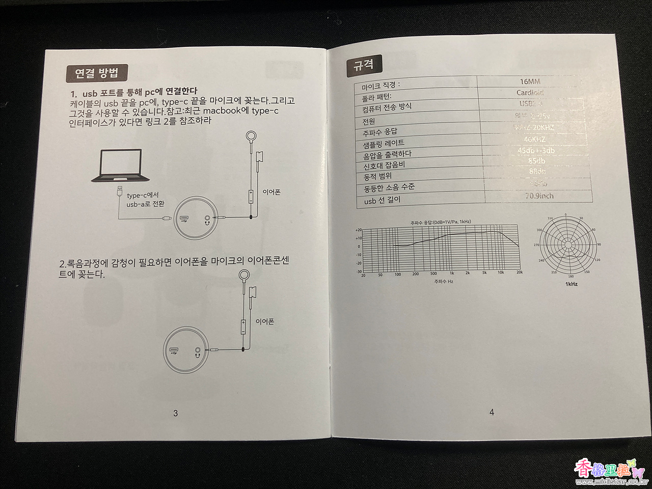 매뉴얼에는 한국어 매뉴얼 부분도 있다.