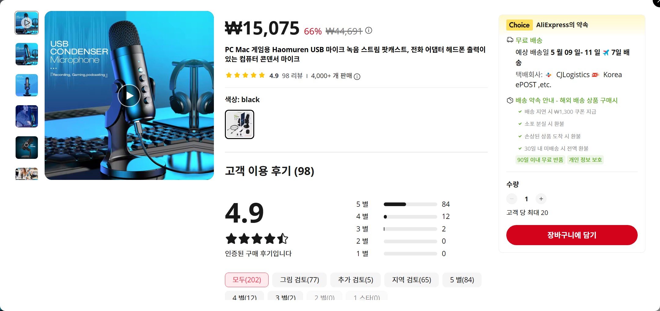 Ali 직구로 콘덴서 마이크 외 3종 구입