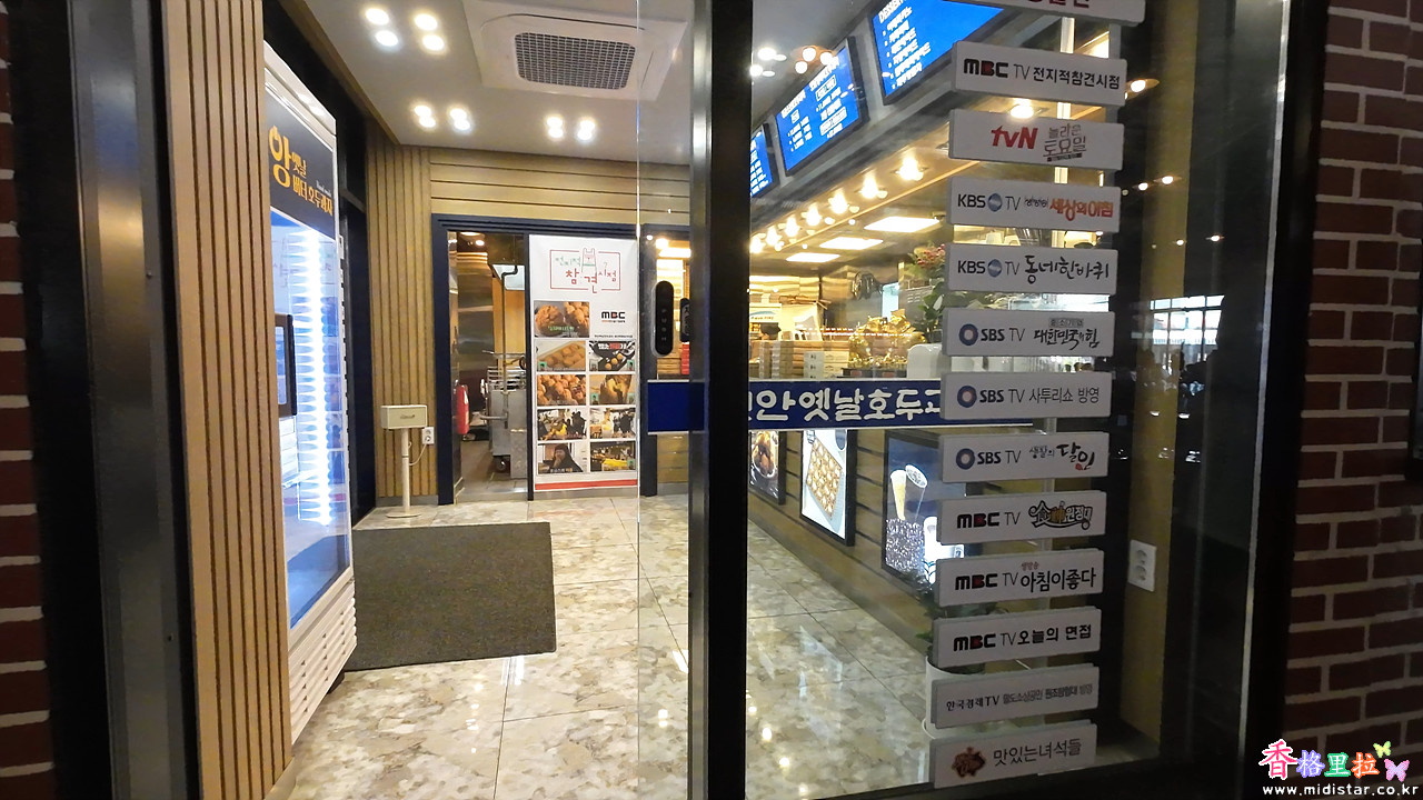 각 방송국 출연 스티커가 줄줄이 붙어 있다.