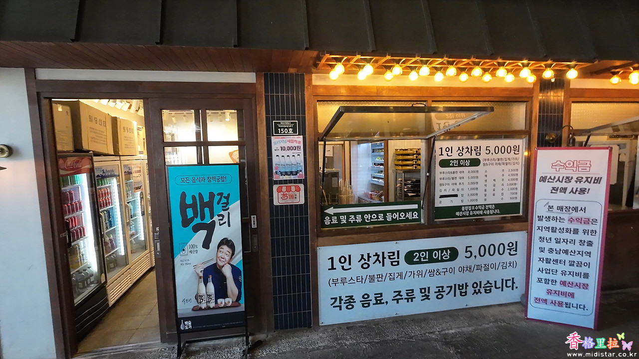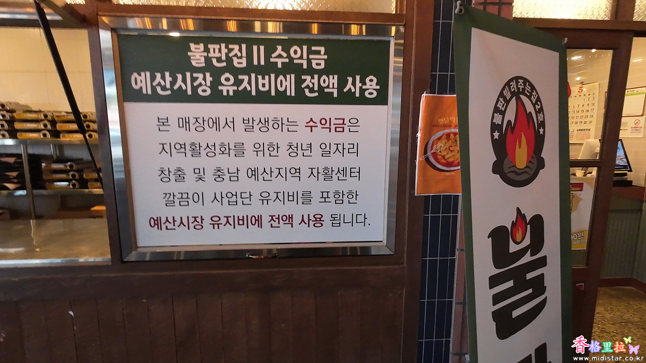 불판집 II 도 있는데 수익금은 예산시장 유지비에 전액 사용된다고 쓰여있다.