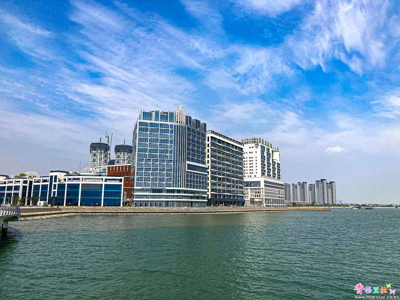파란 건물과 하얀 건물은 둘다 호텔이다.