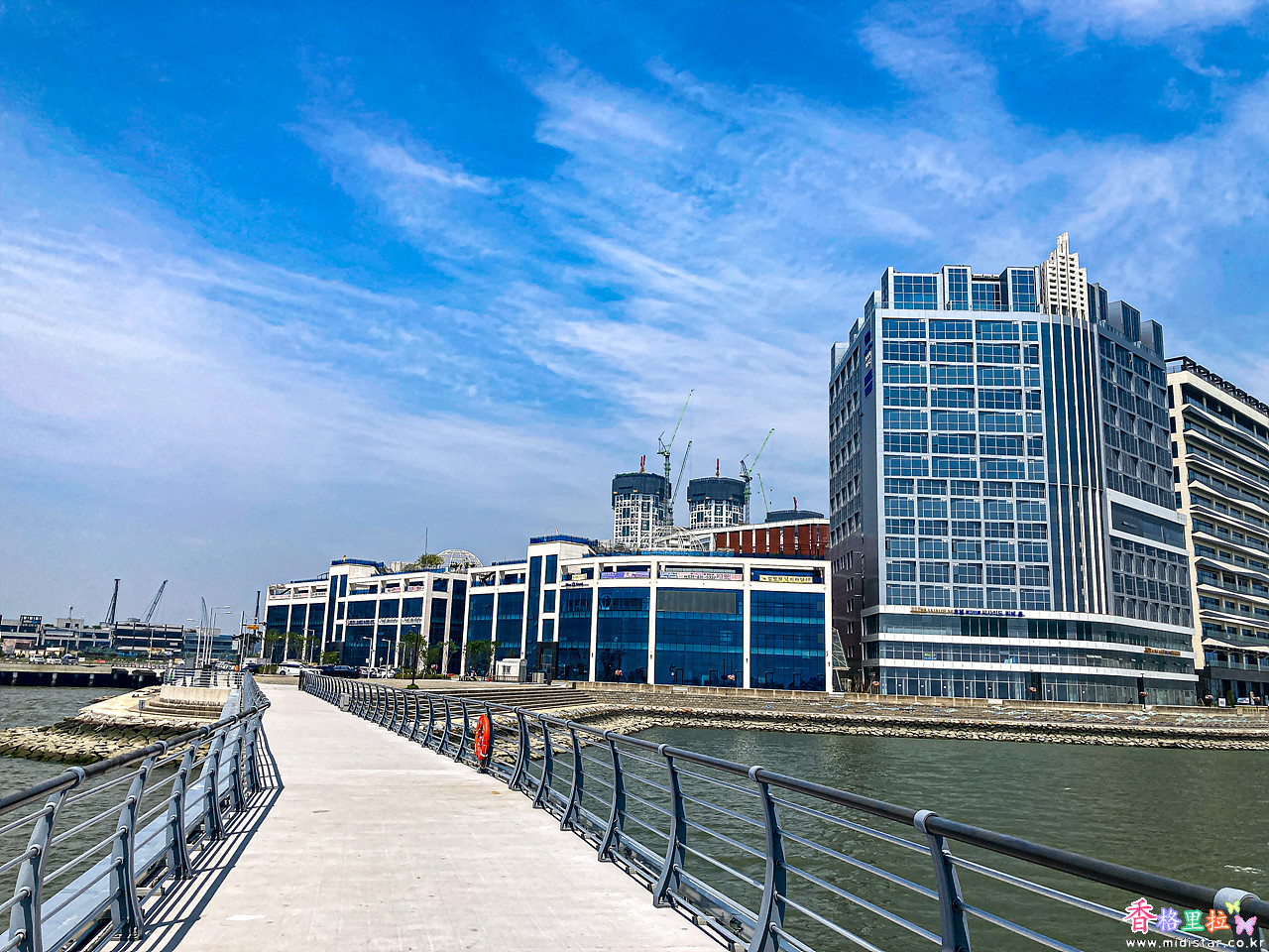 파란 건물과 하얀 건물은 둘다 호텔이다.