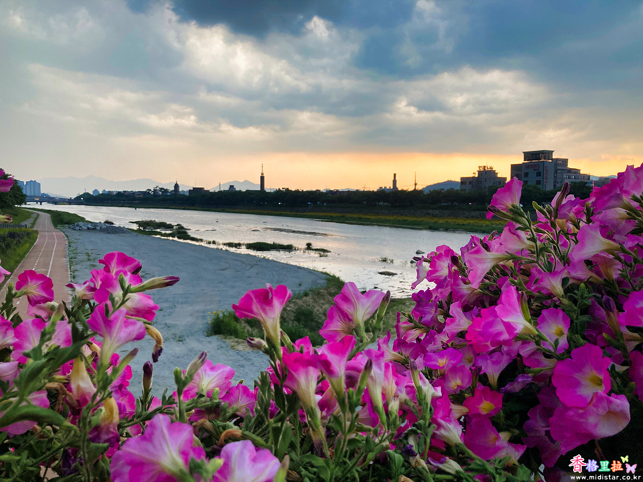 다리 위 노을 풍경