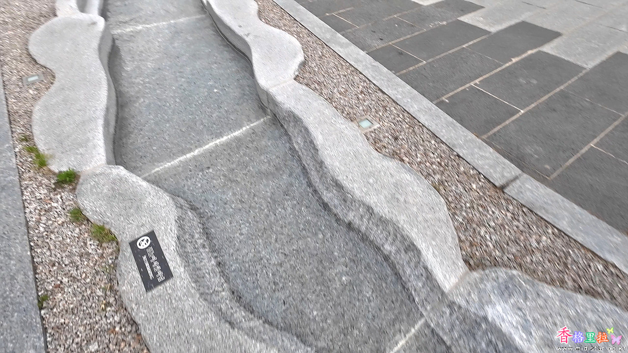 돌로 깍아 만든 수로에 물이 졸졸 흐른다.