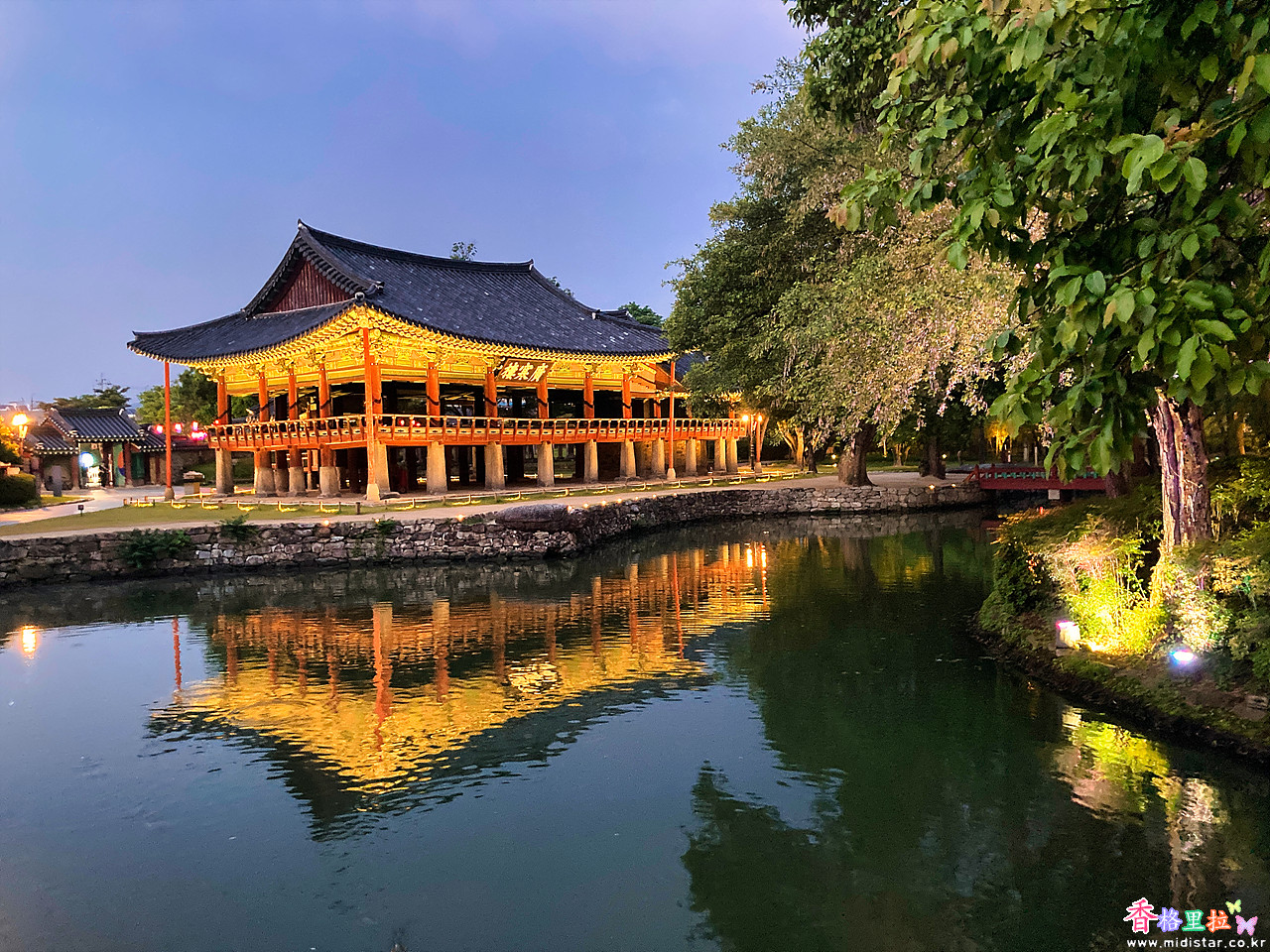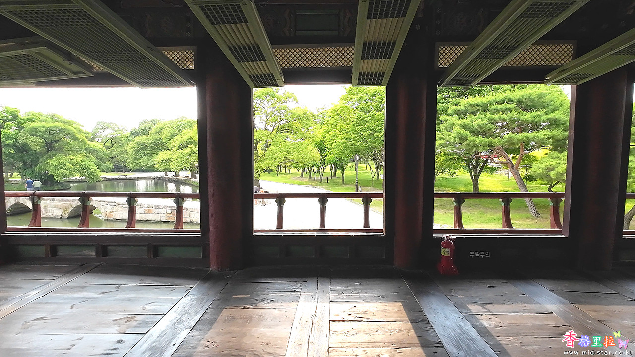 호수와 오작교: 누각 앞에 넓게 펼쳐진 호수는 은하수를 상징하며, 그 위를 가로지르는 오작교(烏鵲橋)는 견우와 직녀의 애틋한 사랑 이야기를 담고 있습니다.