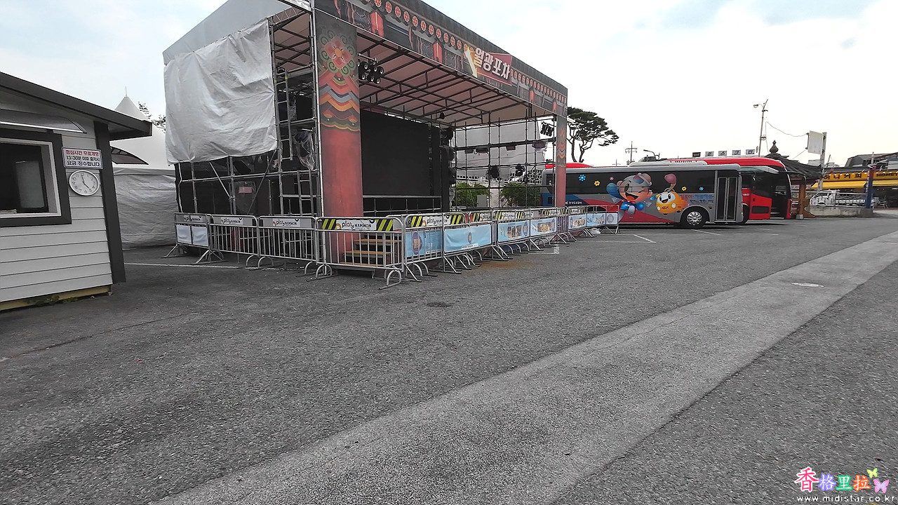 관광버스 1대가 서 있고 주차장이 한산하다.