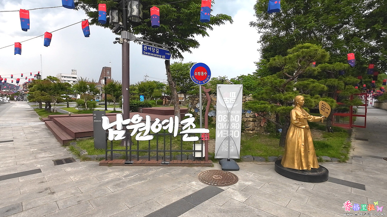 남원예촌이란 글이 보이고 춘향의 석상이 보인다.