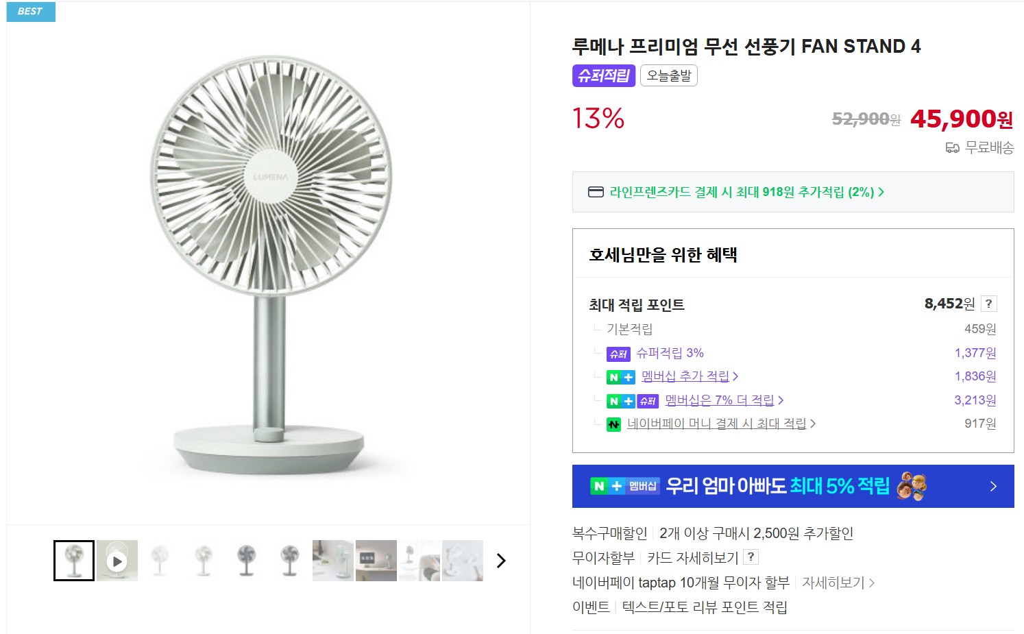 처음에는 손에 들고 다니는 작은 선풍기를 사려고 해서 내가 극구 반대했다. 그래서 선택된 선풍기이다.