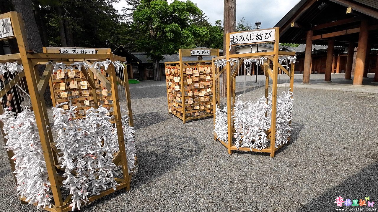 오미구지(おみくじ)는 일종의 운을 보는 종이로 액운이 나오면 오미구지(おみくじ)를 묶어두는 곳에 묶어 놓아 액운을 떨치고 간다고 한다.