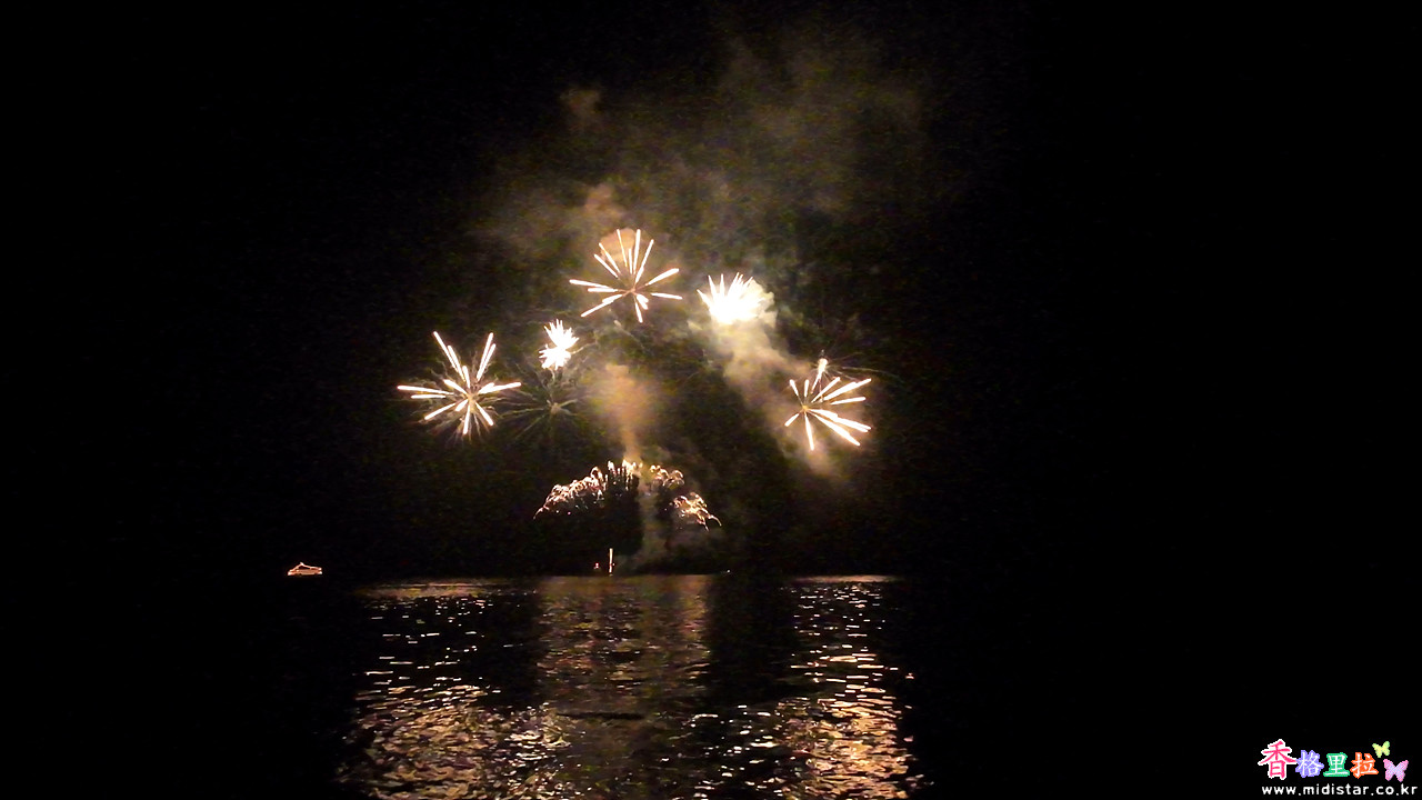 한 군데서 불꽃을 쏘는 게 아니라 움직이는 배에서 불꽃을 쏘아서 초반에는 불꽃이 아주 작게 보여서 불꽃을 찍을 수 없었다.