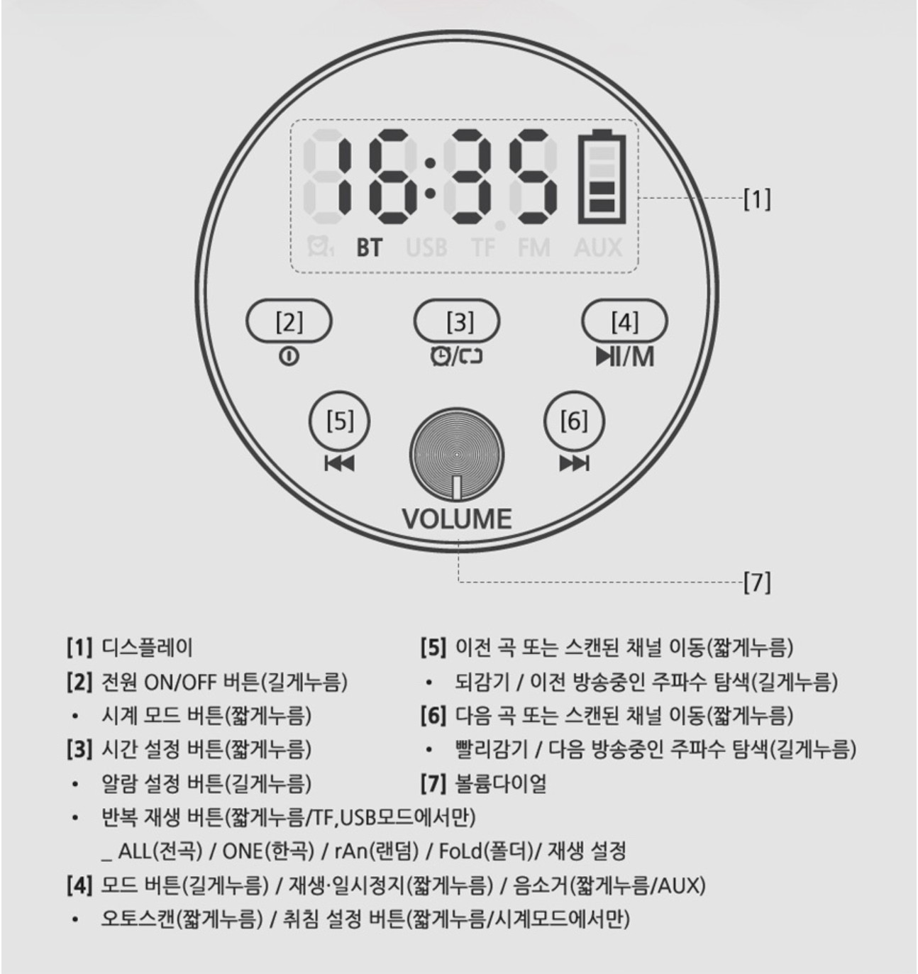 M 버튼을 눌러 블루투스, FM 라디오를 선택할 수 있는데 영어 음성으로 알려준다.