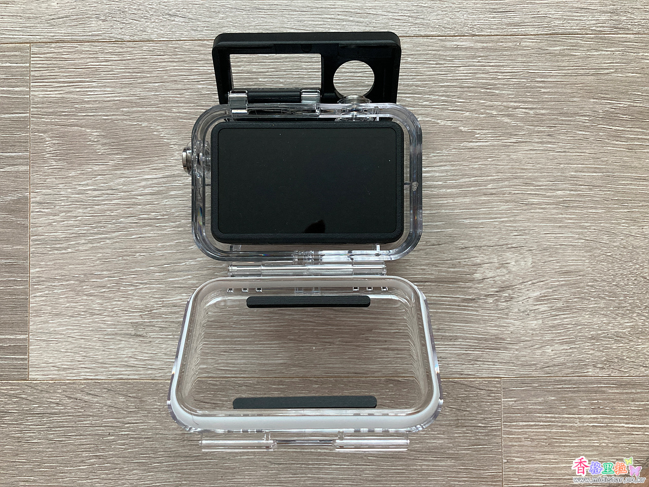 뒷면 커버를 연 다음 Osmo Action 5 Pro를 집어 넣으면 된다.