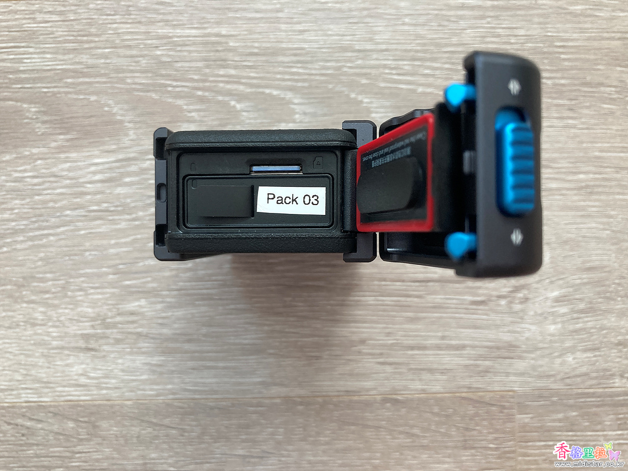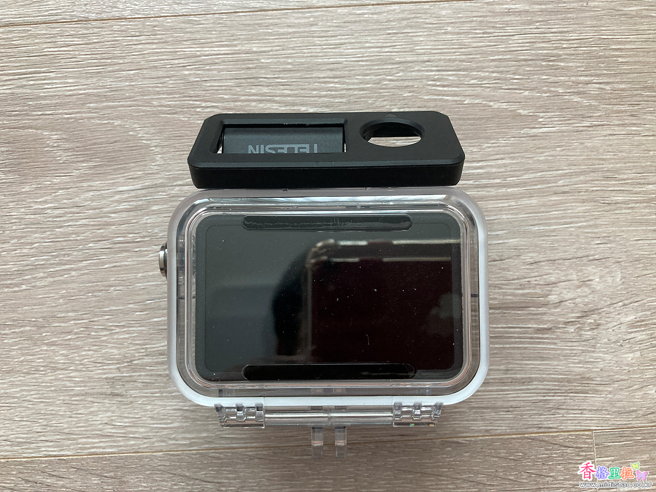 뒷면 커버를 연 다음 Osmo Action 5 Pro를 집어 넣으면 된다.