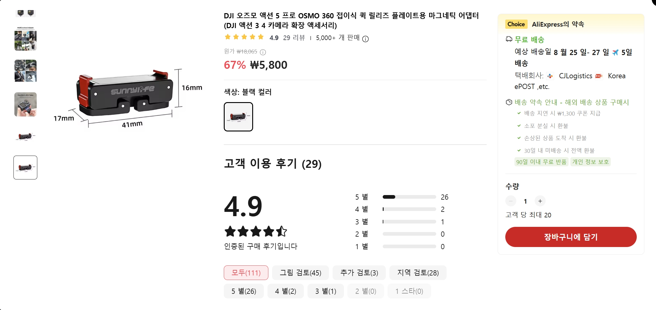 Ali 직구로 Osmo Action 5 Pro 액세서리 구입